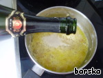 Добавить шампанское (игристое вино) брют или сухое белое вино.
