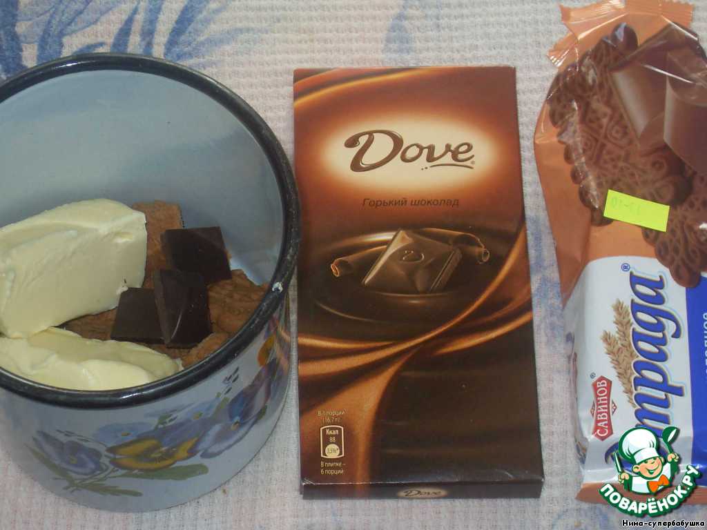 - Печенье (шоколадное сдобное, для подложки) — 125 г