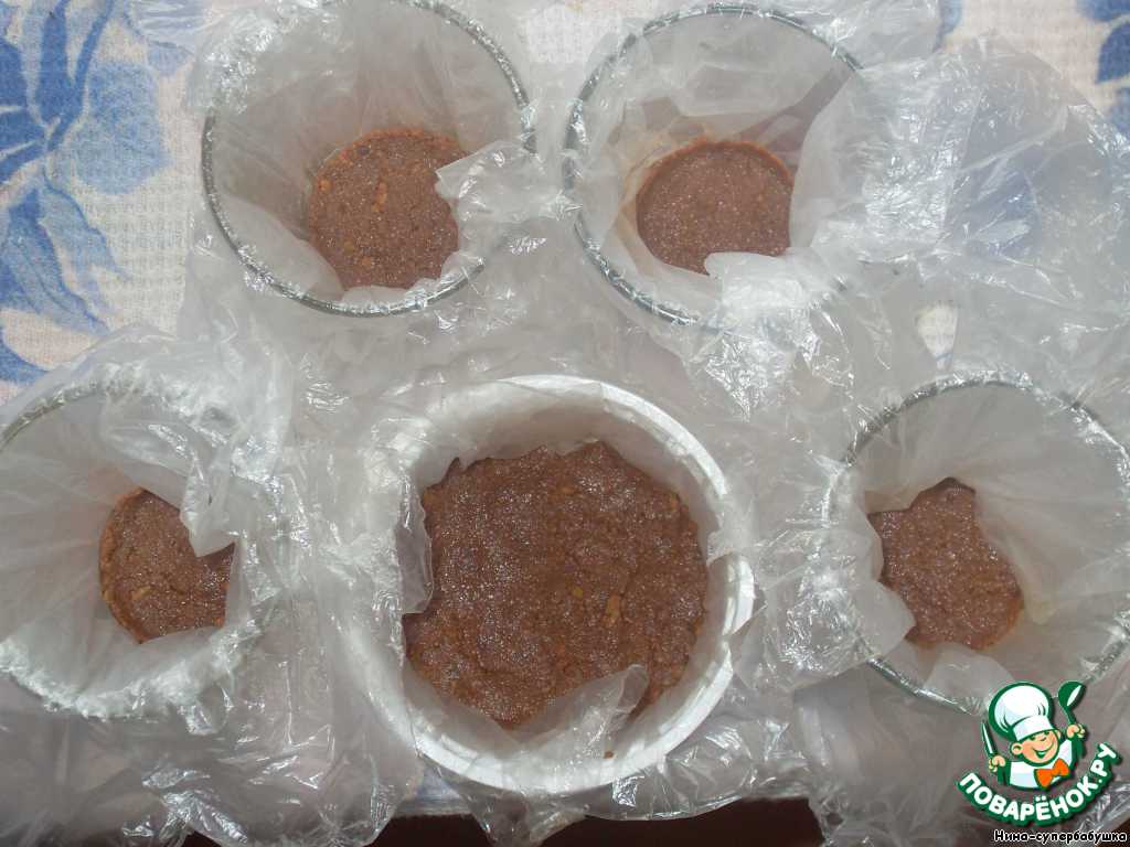 Заполнить получившейся массой стаканы с шоколадной подложкой и поставить в холодильник на ночь. |