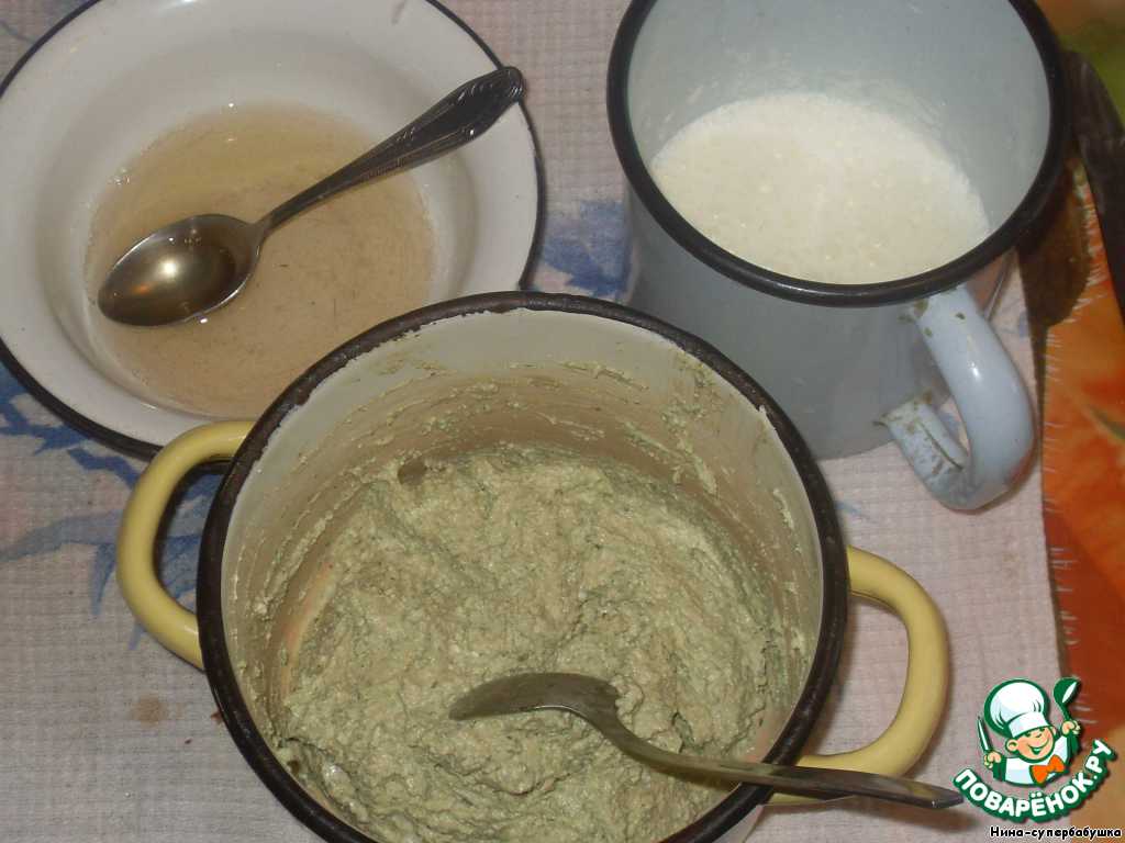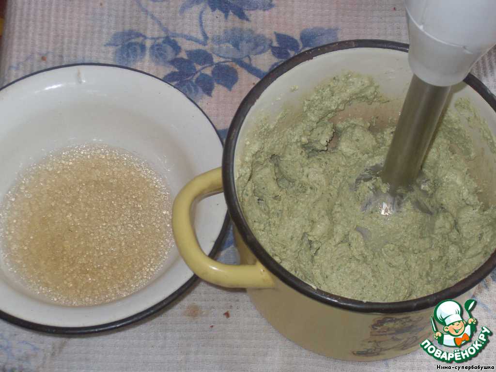 Желатин залить 2 ст. л. воды. Взбить миксером творог с сахаром и протертой мятой. |