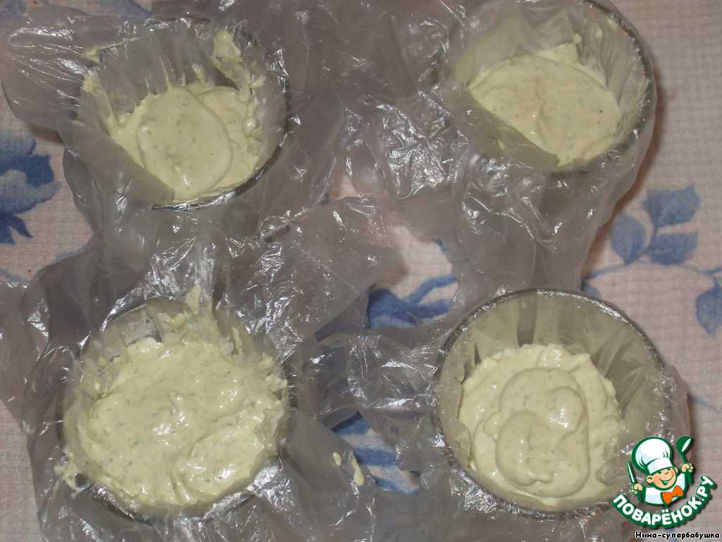 Перед подачей вынуть за концы пленки пирожные из стаканов, пленку аккуратно удалить, а пирожные украсить листиками мяты.