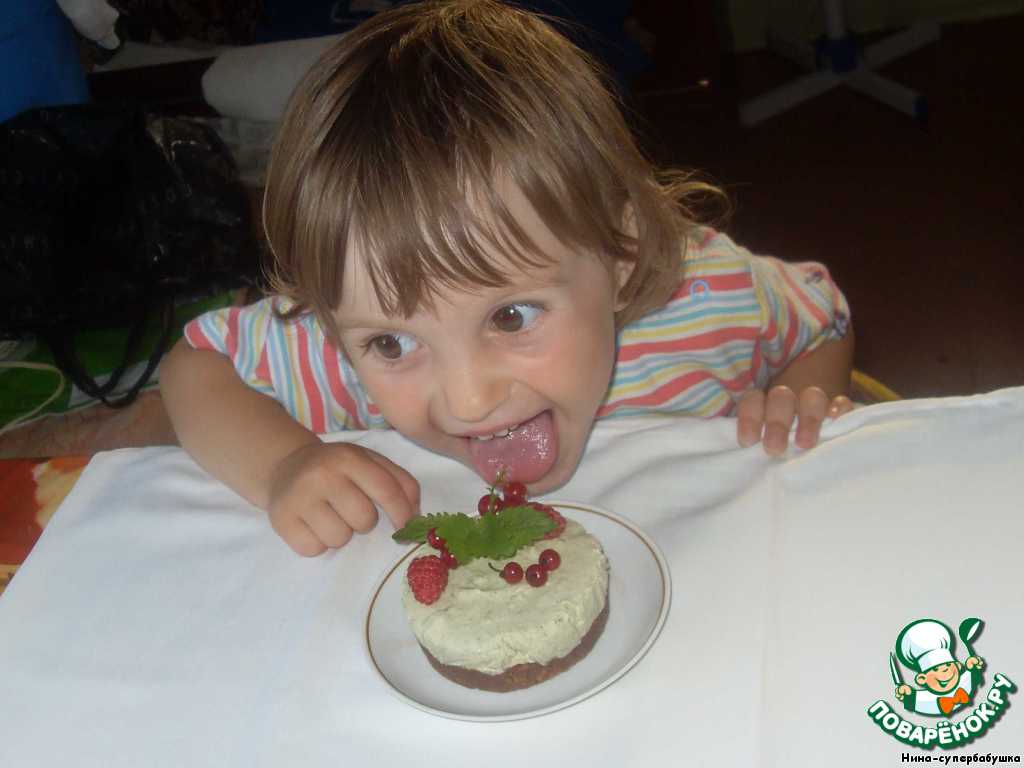 Когда пирожное застыло, решила его тоже сфотографировать. Маринка терпеливо ждала, пока я закончу снимать, и ей разрешат съесть ягодки! |