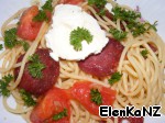 Спагетти с салями и помидорами