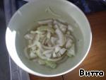 Смешиваем масло с уксусом, перчим, солим и маринуем в этой заправке лук, нарезанный полукольцами -