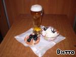 Наливаем любимому мужчине бокал пива, ставим рядом салатик, тарелочку с оливками и пршутом (вяленый высоко в горах Черногории свиной окорок).