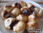 Приготовим маленькие булочки "Шу". Как приготовить заварное тесто, я подробно описала в этом рецепте http://www.povarenok .ru/recipes/show/479 44/. С единственным отличием - для булочек тесто отсаживаем на застеленный бумагой для выпечки противень кусочками размером с лесной орех. Выпекаем при температуре 200 градусов примерно 12- 15 минут. Учтите особенности своей духовки. У меня получились вот такие...