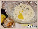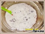 Просеять муку, добавить разрыхлитель и размельченные орехи. -