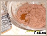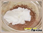 И в конце добавить мучную орехово-шоколадную сухую смесь, аккуратно перемешать ложкой.