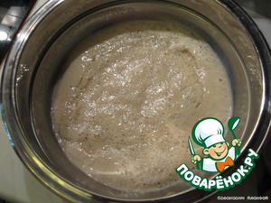 Добавить 250 гр. муки и вымесить крутое тесто (при необходимости добавлять муки). Накрыть полотенцем и оставить подниматься на 1 час. Тесто должно увеличиться в объеме вдвое.