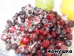 Ежевику и чернику измельчить в блендере с 3 ст.л. яблочного сока и сахаром.