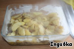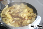 2) Выкладываем на сковороду, наливаем немного воды, добавляем 50г сахара и корицу. Припускаем до полу готовности. -