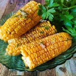 Первый раз в жизни запекала кукурузу и просто влюбилась в этот рецепт! Безумно вкусно и ароматно! И масло можно "ароматизировать" по своему вкусу! Пока есть молодая кукуруза, не упустите случая попробовать! Кукурузу (если не очень молодая), лучше предварительно отварить, можно также использовать и мороженую.