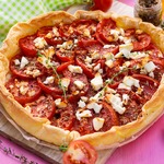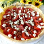 Открытый пирог - тарт - подаeтся во Франции к обеду вместо хлеба и выпекается каждой французской хозяйкой с разными начинками. Тарт с помидорами и брынзой, дижонской горчицей и мeдом - неземное наслаждение!!!