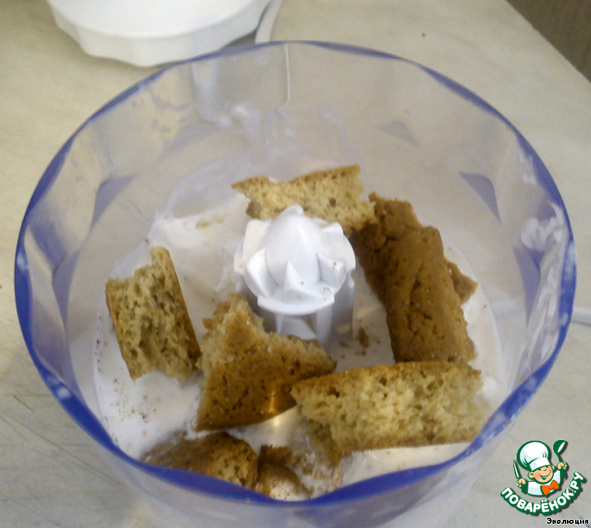 В блендер загружаем мороженое, молоко, щепотку корицы и разломанное печенье. Все взбиваем до состояния однородности. |