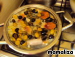 Когда вода в сотейнике закипит, добавить оливки, маслины и каперсы. Тушить минут 20.