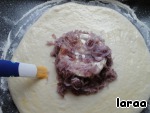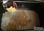 Смешать все ингредиенты для теста и поставить подходить его. За меня это сделала хлебопечка.