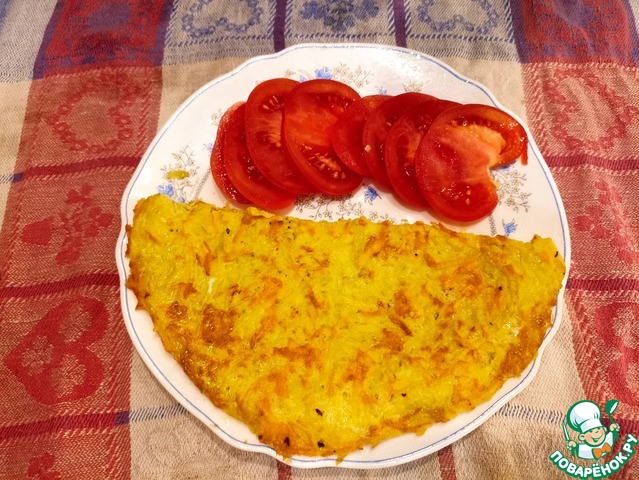 яйца смешать с сырным соусом и вылить на картофельный блин, еще немного обжарить перевернуть.