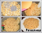 Готовую смесь аккуратно, не утрамбовывая, выкладываем на тарелку в виде конуса и формируем муравейник. Сверху присыпаем маком.