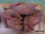 Перепелов вымыть, вытереть насухо и обвалять в приправе для птицы.