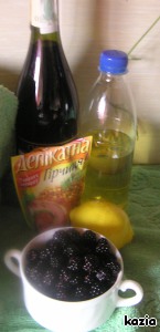 В процеженную ежевику добавляем лимонный сок и вино (150 гр).