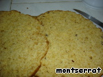 Коржи получаeм достаточно толстые, их можно разрезать. По желанию, можно пропитать сиропом, мне нравится сухой торт, поэтому я только смазала в сeредине жидким абрикосовым вареньем.