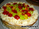 Есть у меня дежурный рецепт тортика, который меня часто выручает. Его достоинство в том, что тесто я делаю вечером, оставляю на ночь в холодильнике, а на следующий день его выпекаю. При хроническом отсутствии свободного времени это очень помогает. Веселенький тортик я делала в жаркое время, поэтому вместо крема сделала разноцветное фруктовое желе: и глаз радует, и для желудка облегчение.