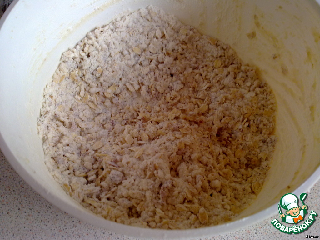 • 200г арахиса измельчить при помощи блендера и смешать с мукой, овсяными хлопьями, солью и содой.