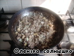 добавляем мелко нарезанные грибы, специи и зелень, жарим еще 5 минут