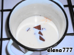 Молоко разогреть, растопить в нём поломанный на кусочки шоколад, довести до кипения.