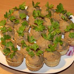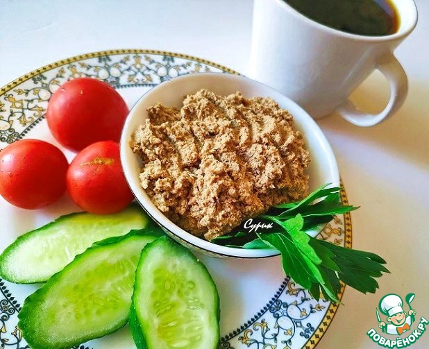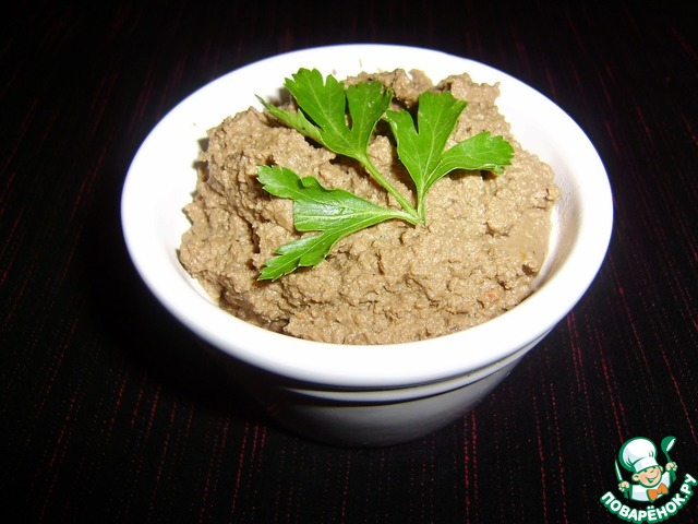 При помощи блендера (либо мясорубки) взбить все ингредиенты до состояния паштета.