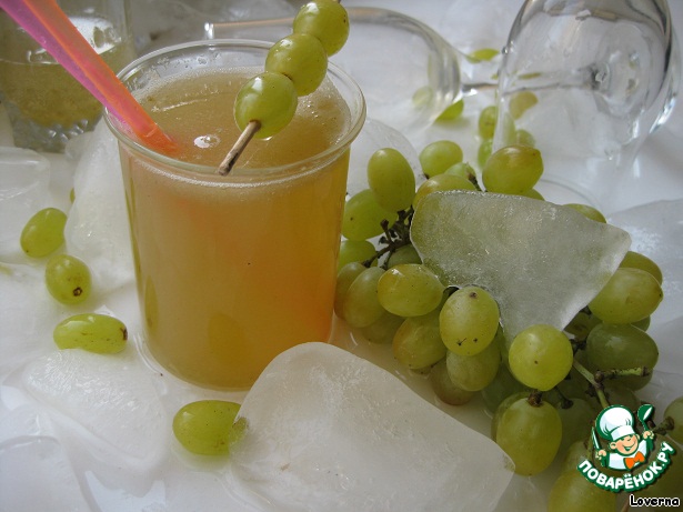 Вкусно! Аппетитно! Если вы любите виноград, какой-нибудь зеленый киш-миш - этот коктейль для вас... это замечательное угощение с замороженными виноградинами в качестве бонуса. На конкурс "Утомленные солнцем".