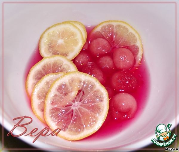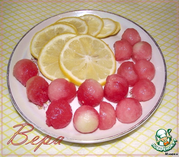 В глубокую посуду выложить арбуз и лимонные дольки,