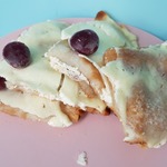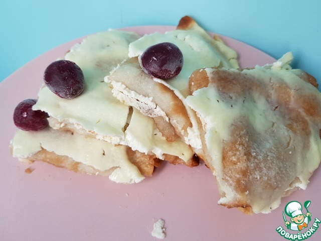 4. Выкладываем блины на противень, накрытый пергаментом, смазываем яйцом тонким слоем, посыпаем тонким слоем сахара, смазываем смесью сметаны с сахаром (по вкусу) + немного муки, снова посыпаем небольшим количеством сахара. Выпекаем в разогретой до 180*С духовке до образования золотистой корочки. Достаём, укладываем на блюдо. Украшаем тем, что Вам нравится (у меня - малинка свежая). Приятного аппетита!!!