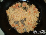На раскаленную с маслом сковороду выкладываем помидор, слегка обжариваем на большом огнем,