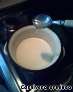 Остальное молоко довести до кипения, добавив ложку меда и щепотку соли