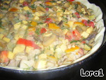 8. Выливаем нашу начинку поверх теста, разравниваем и ставим в духовку, разогретую до 200 град., на 40-50 минут (в зависимости от духовки)