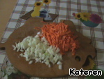 Чистим лук, морковь и режем. Морковь - соломкой, можно на крупной терке натереть. Если есть желание, еще добавить перец болгарский.