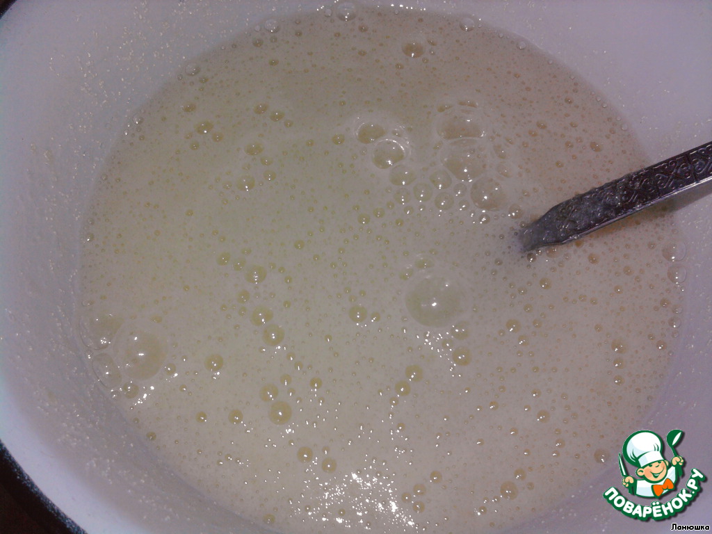 Теперь начинаем колдовать: смешиваем оставшиеся сметану и сахар.