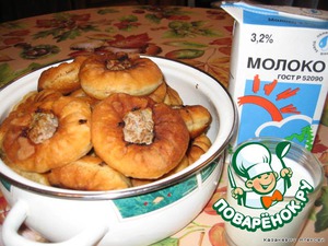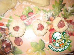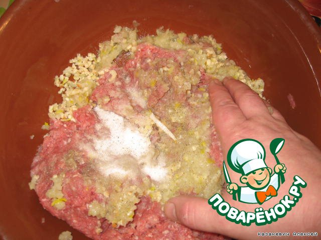 Отрываем от теста небольшие кусочки, разминаем, в центр помещаем фарш...