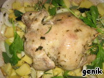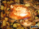 Долго искала рецепт фаршированной курочки, но не нашла ничего подобного. Поэкспериментировала и выработала мой вариант. Ароматная, очень вкусная курочка с гарниром из картошки и лука (классика). Может и не ново, но очень вкусно!