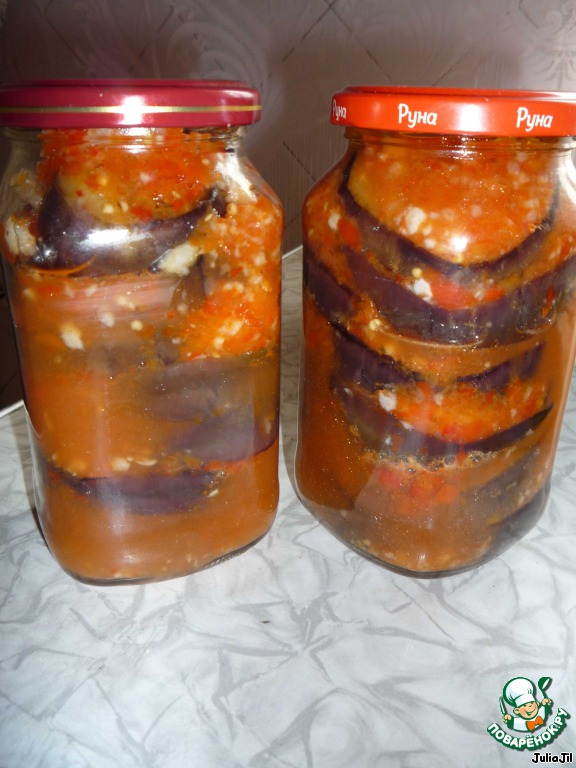 Теперь в пастеризованные банки выкладываем баклажаны.