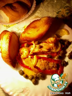 Подавать с обжаренными ломтиками багета, посыпав рыбу каперсами.