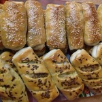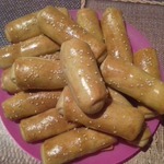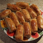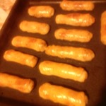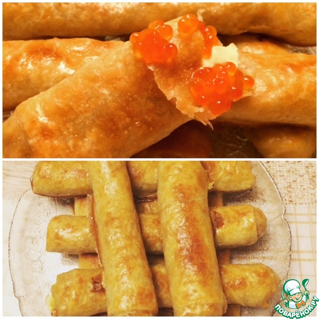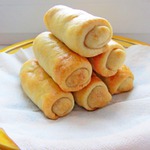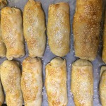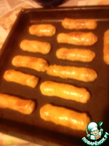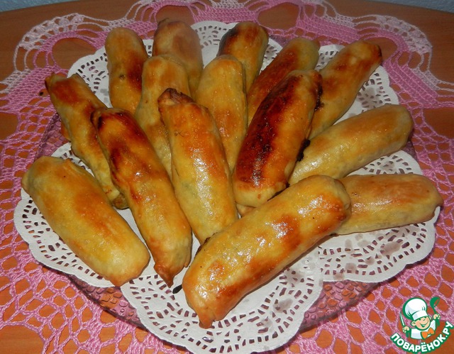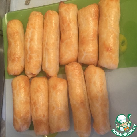 Аккуратно заворачиваем, формируя нашу"сигару", выкладываем на противень швом вниз, пирожок получается размером где-то 10*3 см.