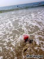 Наливаем в одноразовые стаканы и - на пляж / он у нас прямо за калиткой/.