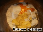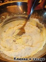 Высыпаем муку к взбитому маслу и перемешиваем до однородной консистенции.