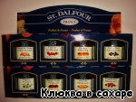 А пока что давайте подготовим конфитюры, из которых будет сделана начинка у печенья. У меня были маленькие баночки с восемью видами: вишня, малина, клубника, персик, абрикос, апельсин, фиги и смесь из четырёх фруктов.