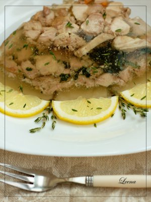 Заливное из кролика, запеченного в винном маринаде