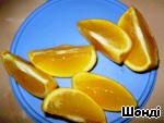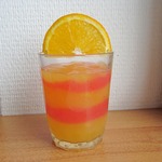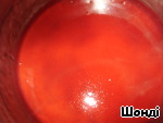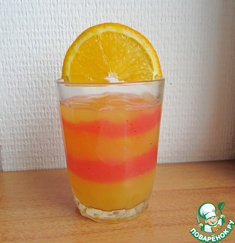 В кипящую воду кладём сахар, размешиваем и вливаем разведенный крахмал, быстро перемешиваем, добавляем сок апельсина, кисель готов (убираем с плиты), отдельно варим кисель с соком ягод брусники .