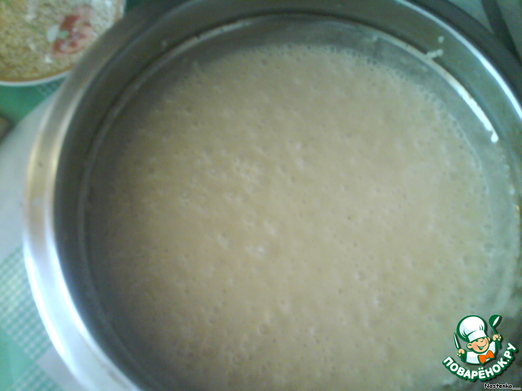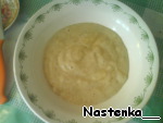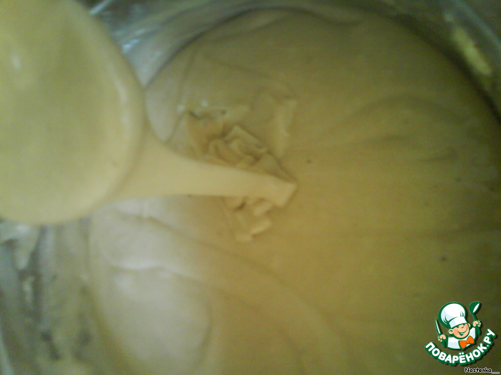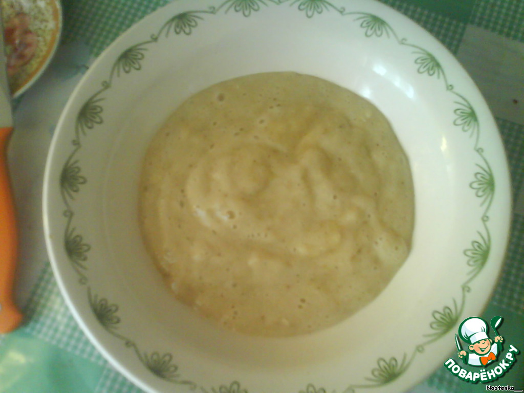 • Разрыхлитель смешиваем с мукой и замешиваем тесто, чуть гуще чем на оладьи