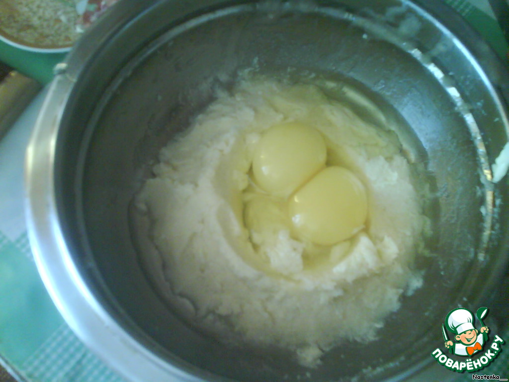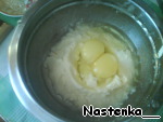 • Масло растираем с сахаром, добавляем яйца и хорошо перемешиваем